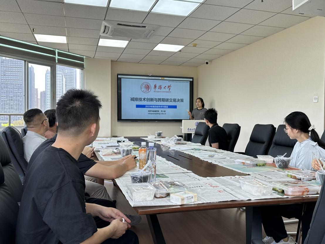 2025年4月30日中午,第四场学术午餐会在我院经管506会议室举行。经济学系齐小源博士受邀做分享,她以“减排技术创新与跨期碳交易决策”为题,给在场的师生呈现了一场精彩纷呈的学术分享。