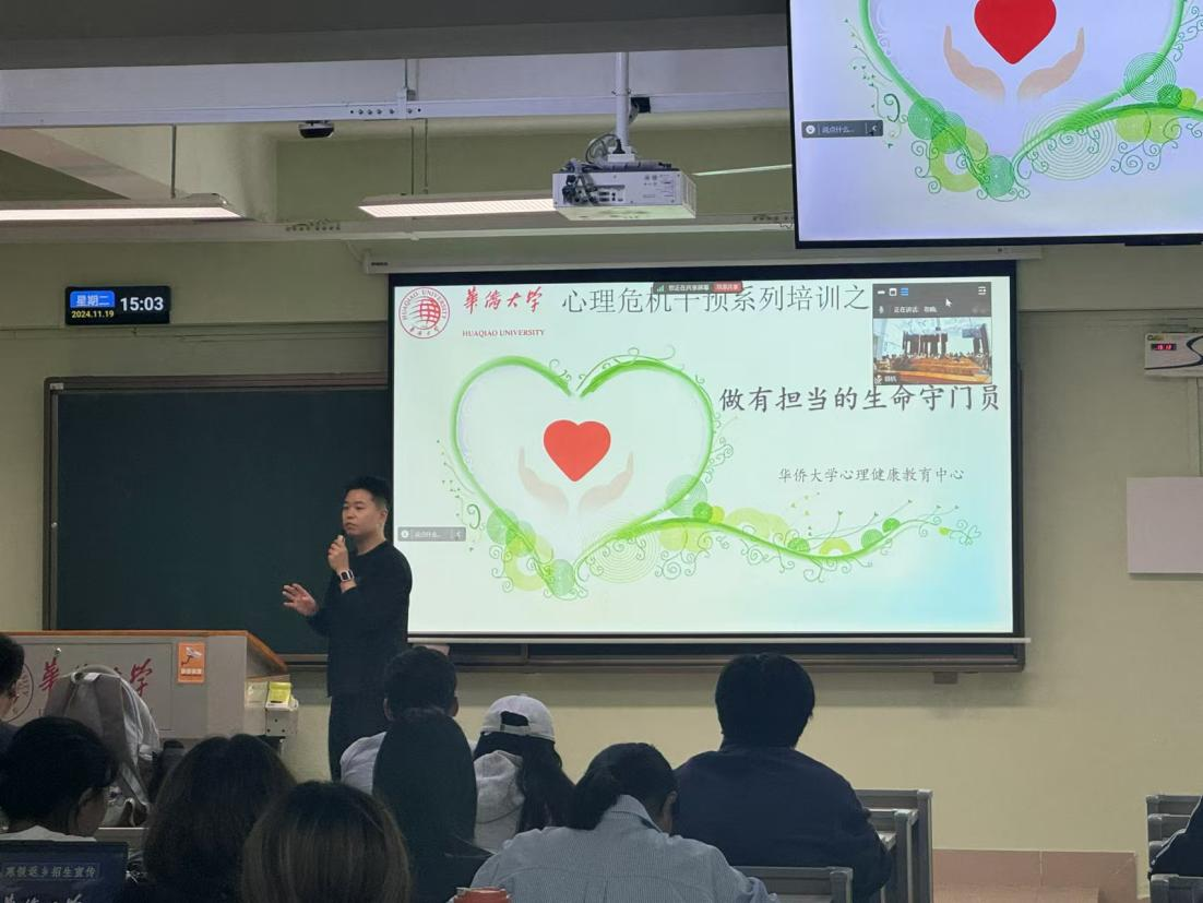 为了加强我院学生对危机事件的识别能力,特别是识别出有自杀倾向的人并及时伸出援手。2024年11月19日下午,我院分别在洪祖杭大楼与陈守仁经济与管理大楼成功开展“生命守门员”培训会。本次会议由青年发展中心主办,邀请415心理启航工作室的张恒瑞老师主讲,参会人员包括所有寝室长、班长、团支书等24级300多名同学。
