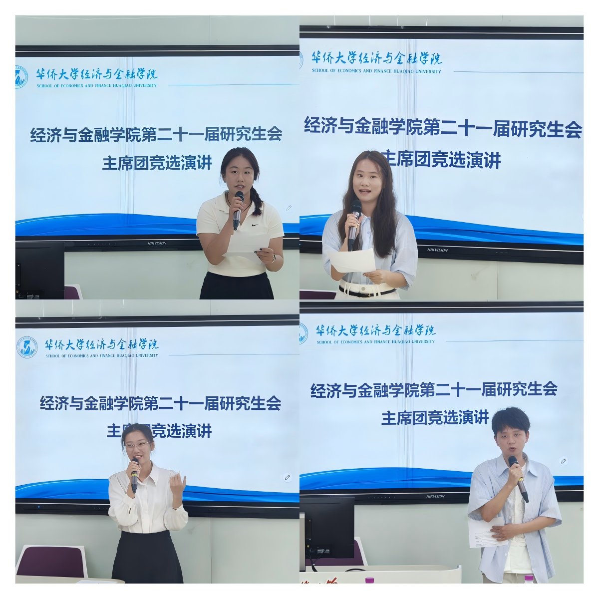 会议伊始,第二十届研究生会主席团成员张熙雯作述职报告。她从组织架构、学生活动、学术建设、文体活动四个方面系统性总结了研会过去一年的主要工作内容。通过她真垫的讲述和生动的展示,在场师生充分了解了经金研会“为同学服务”的初心和“助力学院发展”的担当。报告结束后,现场响起了热烈的掌声。