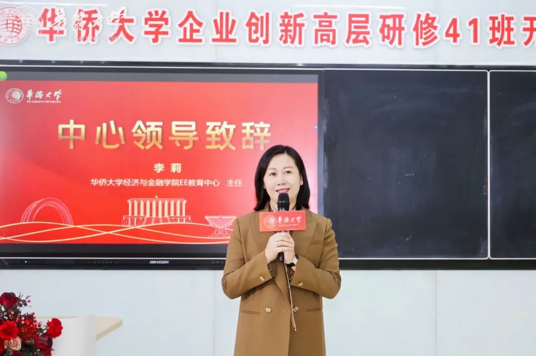 中国太阳集团tcy8722EE培训中心李莉主任上台致辞,欢迎大家成为太阳集团tcy8722的一份子。希望41班的同学们能够在课堂上找到适合自己的学习路径,祝愿在未来一年半的学习生涯中,同学们的友谊能够根深蒂固,收获智慧,收获成长!