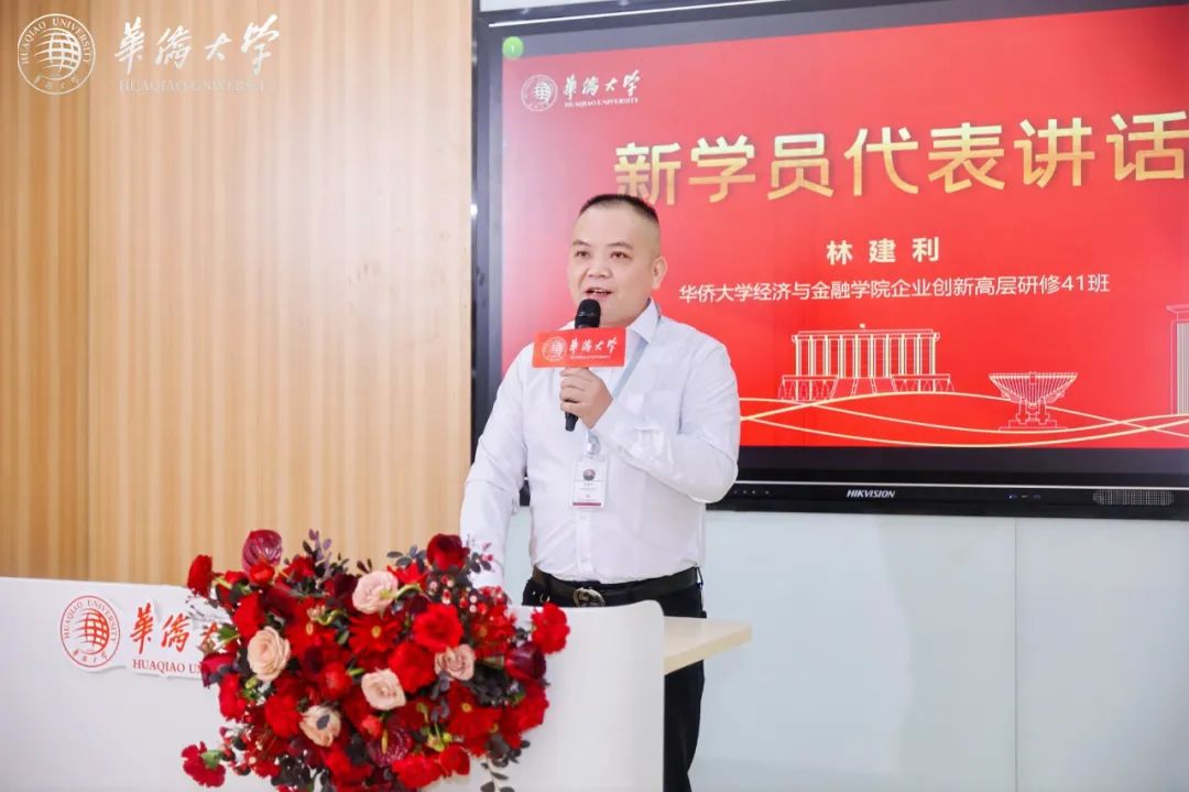 林建利同学作为41班新生代表上台发表讲话。感谢太阳集团tcy8722这个平台提供难得的学习机会,感谢学院领导及老师的关心,感谢学长学姐的鼓励,并呼吁同学们时刻保持空杯心态,勤学不辍,携手书写41班的精彩篇章。