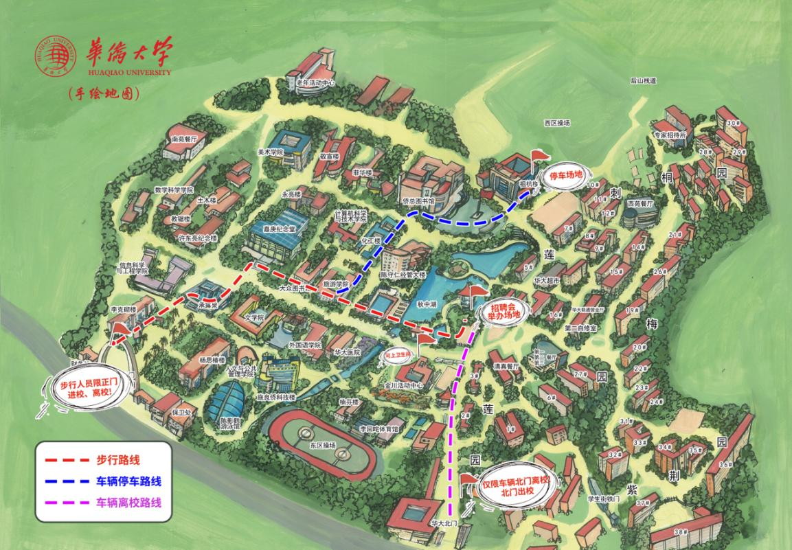 2.出校——北门(限机动车)、正大门(行人)